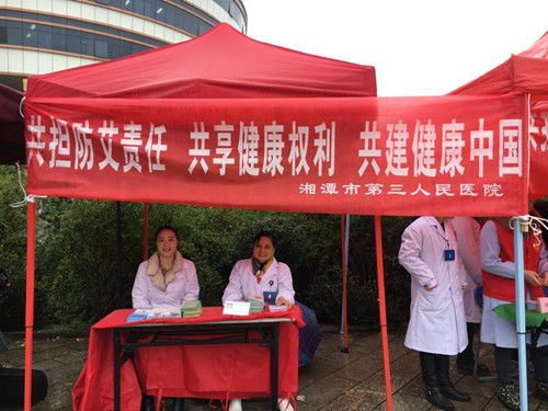 2017年12月1日是第30个世界艾滋病日,今年的宣传主题“共担防艾责任 共享健康权利 共建健康中国”。今天,在岳塘区艾滋病防治工作委员会和岳塘区卫生和计划生育局的统筹安排下,市三医院等相关单位,在湖南省工程学院开展了丰富多彩的防治艾滋病宣传日主题宣传活动。