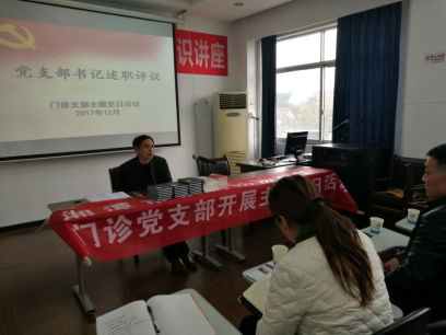 门诊支部党支部书记易丰兆同志首先就2017年度支部党建工作进行述职报告。报告全面总结了支部2017年度的党建工作,报告涉及 深入推进“两学一做”教育活动、贯彻落实“三会一课”制度、积极开展“三提一促”,支部组织发展、标准化建设等几个方面,同时提出今后的工作思路。